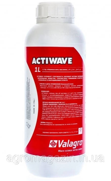 Actiwave - рідке органо-мінеральне добриво, що стимулюють харчування посадок, активізує процес поглинання корисних речовин кореневою системою, прискорює обмінні процеси, діючи на рівні клітинної мембрани.